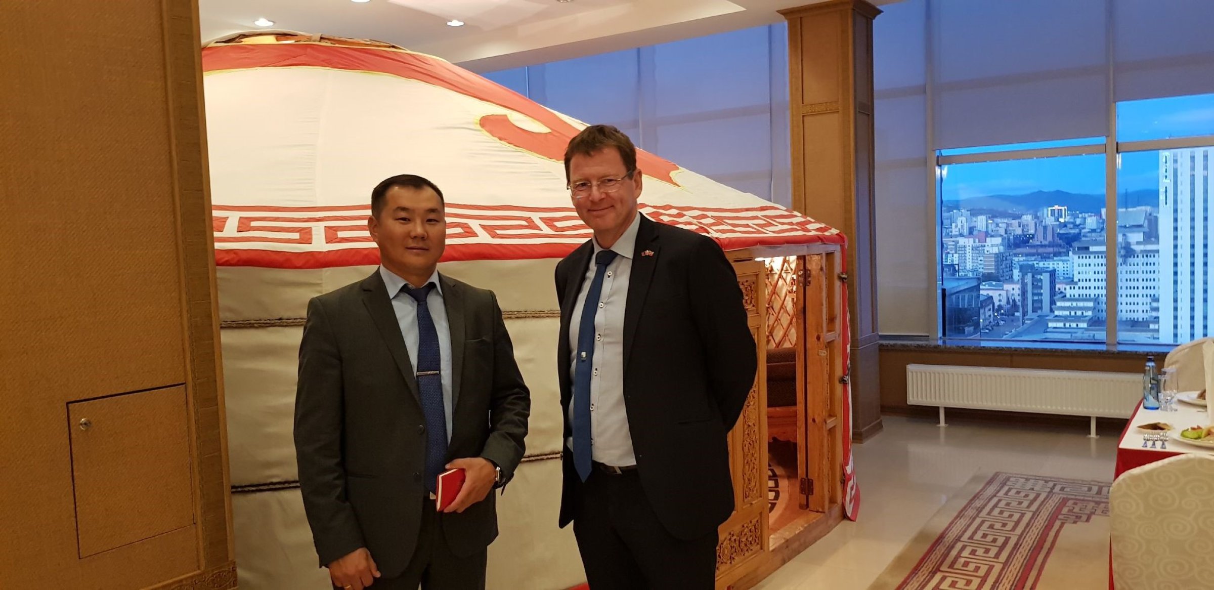 I år er det 50 år siden det ble opprettet diplomatiske forbindelser mellom Norge og Mongolia. Under besøket åpnet Geno, som avler kurasen norsk rødt fe (NRF) og eksporterer okesæd til Kina, digital forbindelse mellom Hamar i Norge og gårder i Kina.