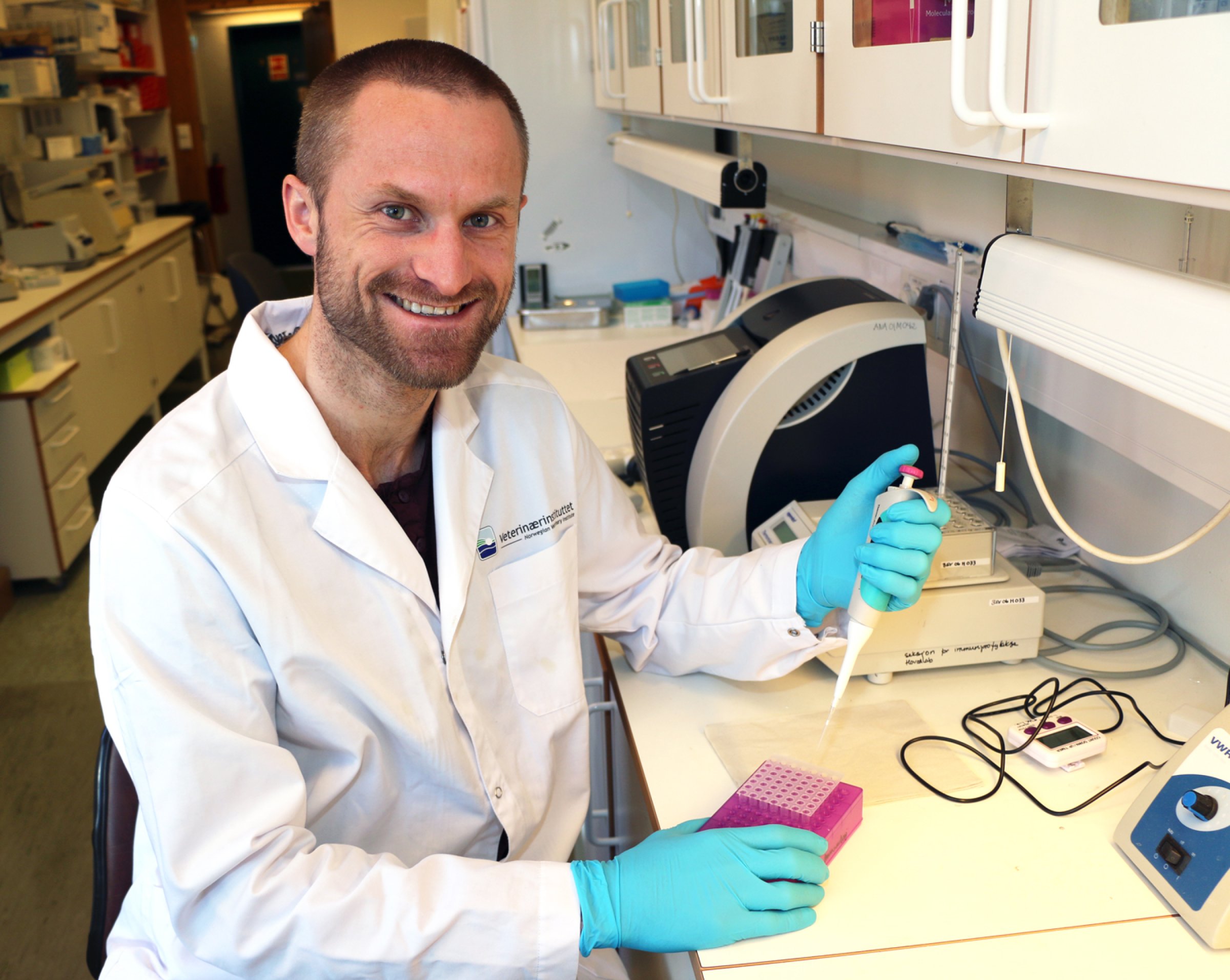 I arbeidet har han gjort smitteforsøk med oppdrettslaks, der han både undersøkte om en PRV -infeksjon hadde effekt på oksygenopptak og om det påvirket smitte av SAV som gir pankreassykdom(PD).