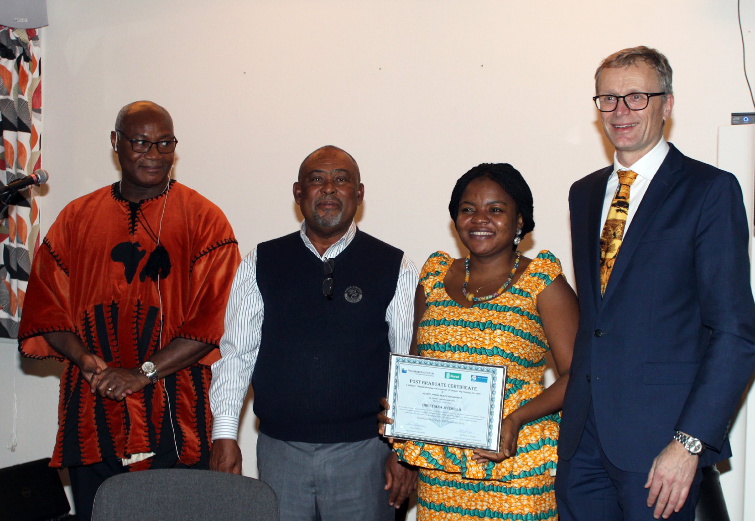 The government of Ghana subsequently made a formal request to the Norwegian Veterinary Institute to provide the eight week long training program. This resulted in a most comprehensive course content covering all aspects of fish health management as part of NORWAY GHANA TILAPIA INITIATIVE (NORGHATI), the consortium established by Morefish Solutions and the Norwegian Veterinary Institute to transfer Norwegian aquaculture knowledge and technology to support the industry in Ghana.