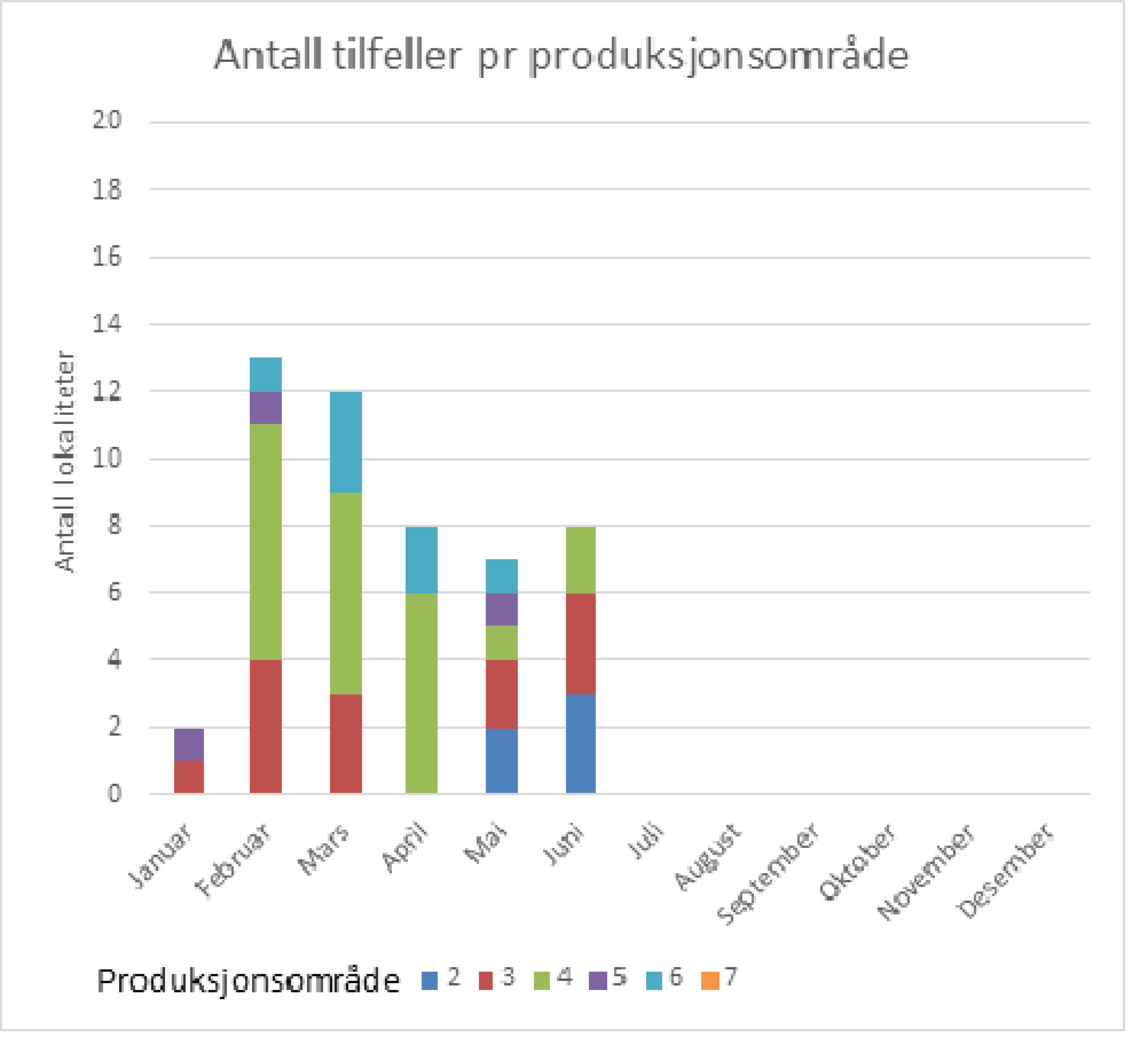 Oversikten viser tilfeller som er meldt inn til Veterinærinstituttet fra Mattilsynet, basert på analyser utført ved private laboratorier eller ved Veterinærinstituttet.