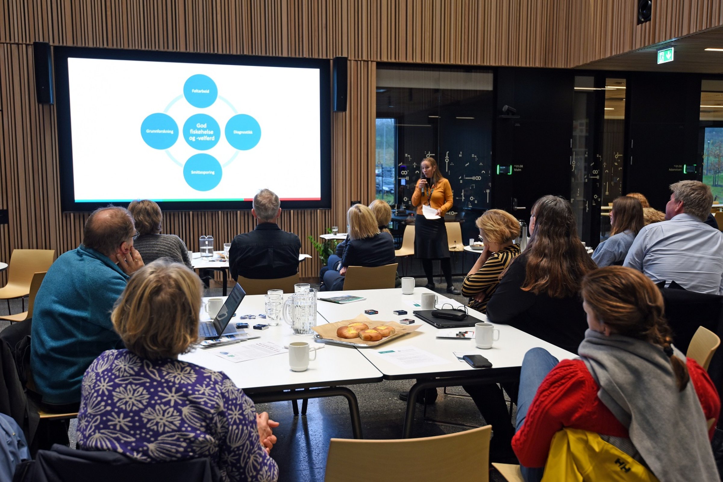 Det var 27 gjester fra hav- og polaravdelingen i Norges forskningsråd som hadde bedt om å få se nybygget og få innspill fra VI og NMBU. Det var et tett program med strategiske innspill og overblikk fra to dekaner og to direktører ved henholdsvis NMBU og VI samt fire forskere fra hver institusjon.