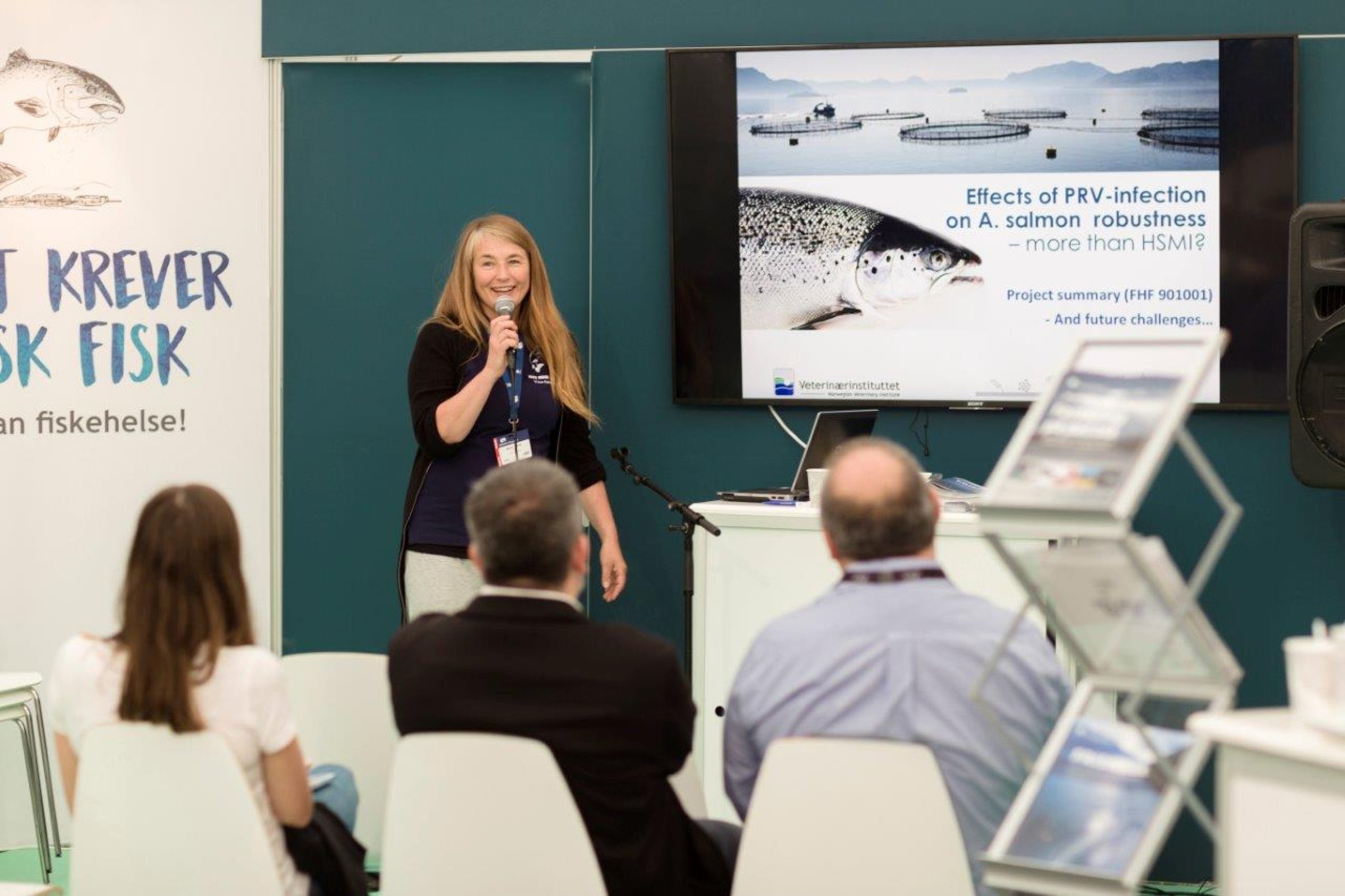 Herunder holder fagdirektør Brit Hjeltnes ved Veterinærinstituttet foredraget «Status sykdom og fiskevelferd – hvilke utfordringer har vi i 2019 og hvor går utviklingen?»